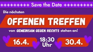Das letzte offene Treffen war ein voller Erfolg! Wir haben wichtige Erkenntnisse für die Bündnisarbeit gewonnen und ganz viel Energie geschöpft. Deshalb setzen wir gleich zwei neue offene Treffen an!